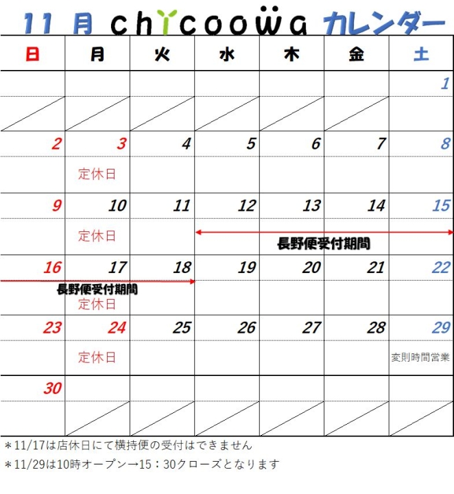 | 2025.10.28 | 11月の営業カレンダーをトップページ下部へUPしました |